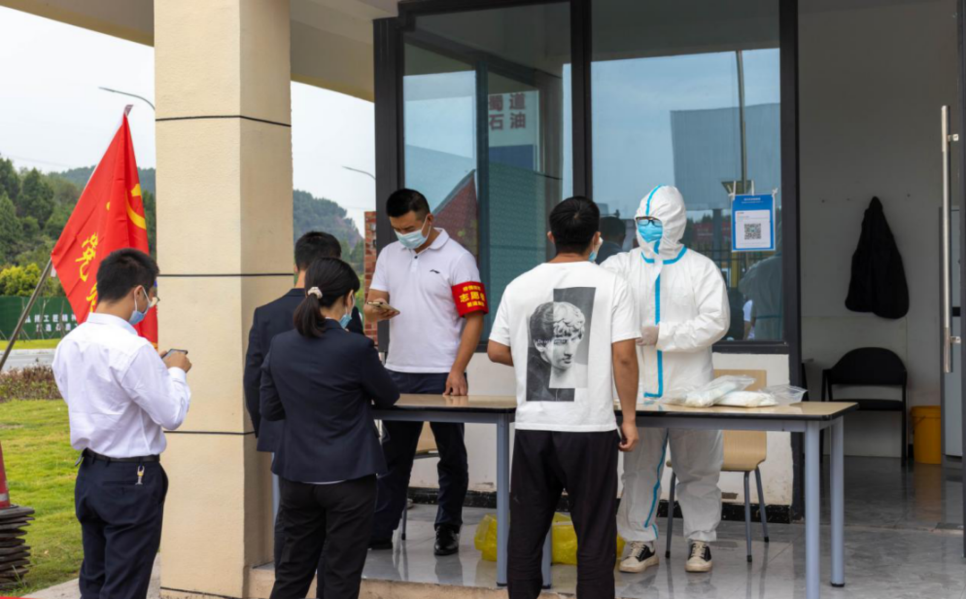 集团党员干部冲锋在前,40余名党员就地化身“天使白”和“志愿红”,下沉到27个社区、小区,协助开展好疫情防控工作。